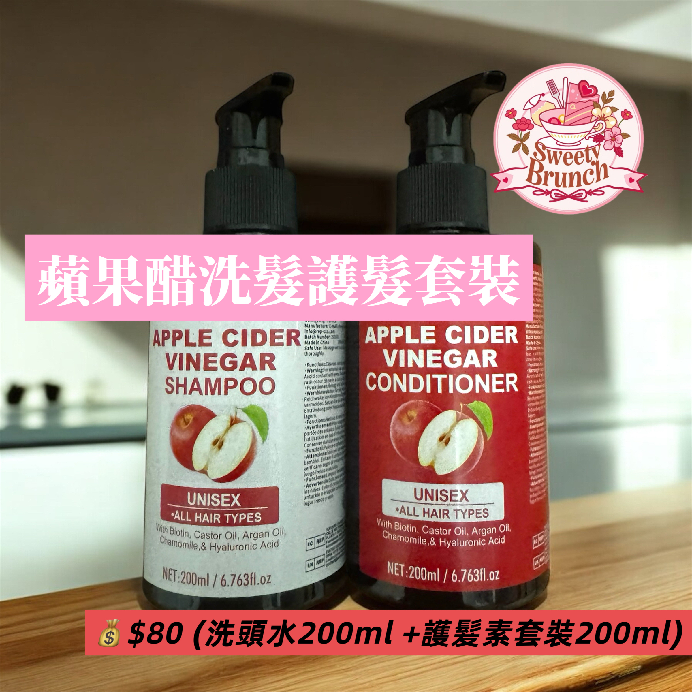 蘋果醋洗髮護髮套裝 蘊含蘋果醋,能幫助清潔頭上多餘油脂和堆積物! ✅含有生物素,角蛋白,咖啡因,蓖麻油等15種關鍵活性成分! ✅能有效預防脫髮,強韌髮絲、促進頭髮生長 ✅具有卓越保濕性能,鎖住水分,減少頭髮痕癢和毛躁 ✅含有豐富維生素和營養成分,可修護受損髮質。 無添加硫酸鹽,對羥基苯甲酸酯或任何其他人工添加劑 ✅長期使用可幫助促進頭髮更濃密,更飽滿和更健康。 蘋果醋的力量: 蘋果醋具有有益於整體頭皮和頭髮健康的特性。能清潔,澄清和保濕的特性,可使您的頭髮更健康,更光滑,更強壯,更濃密。 有助於維持頭皮中的平衡pH值,可以減少毛躁,減少靜電和使頭髮更加柔順光澤 💰$80 (洗頭水200ml +護髮素套裝200ml)