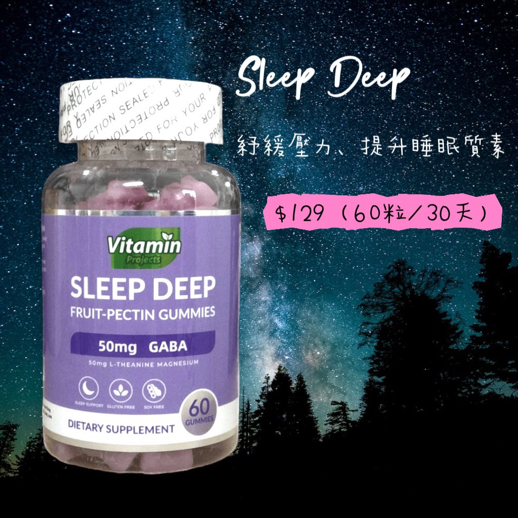 Sleep Deep紓緩壓力、提升睡眠質素小熊軟糖 💁🏼♀️對抗煩躁、疲勞、注意力不集中、易怒、肌肉緊張或睡眠障礙 有效緩解壓力,快速入睡,改善睡眠質素 GABA是一種能快速作用的活性成分,30-60分鐘之内便可以助您放鬆身心,對抗壓力,改善睡眠質素,平靜思緒,讓你更好地應對不同挑戰 有效寧靜思緒,幫助消除不良情緒,獲得更好休息,增強您的身體所需的能量,幫助保持冷靜和鎮定 L-茶氨酸有助改變各種神經遞質的水平,可產生鎮靜作用,促進集中力,有助促進鬆弛和減輕壓力 每兩粒就含 50mcg GABA + L-茶氨酸 🥭🍊純天然水果口味、無麩質、不含人工色素 💰$129一瓶(60粒/30天)